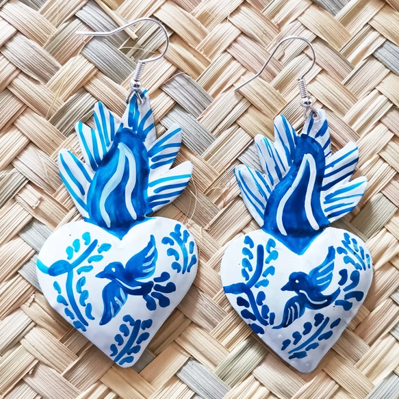 オハラタ ブリキピアス ブルーコラソンハート メキシコ 020