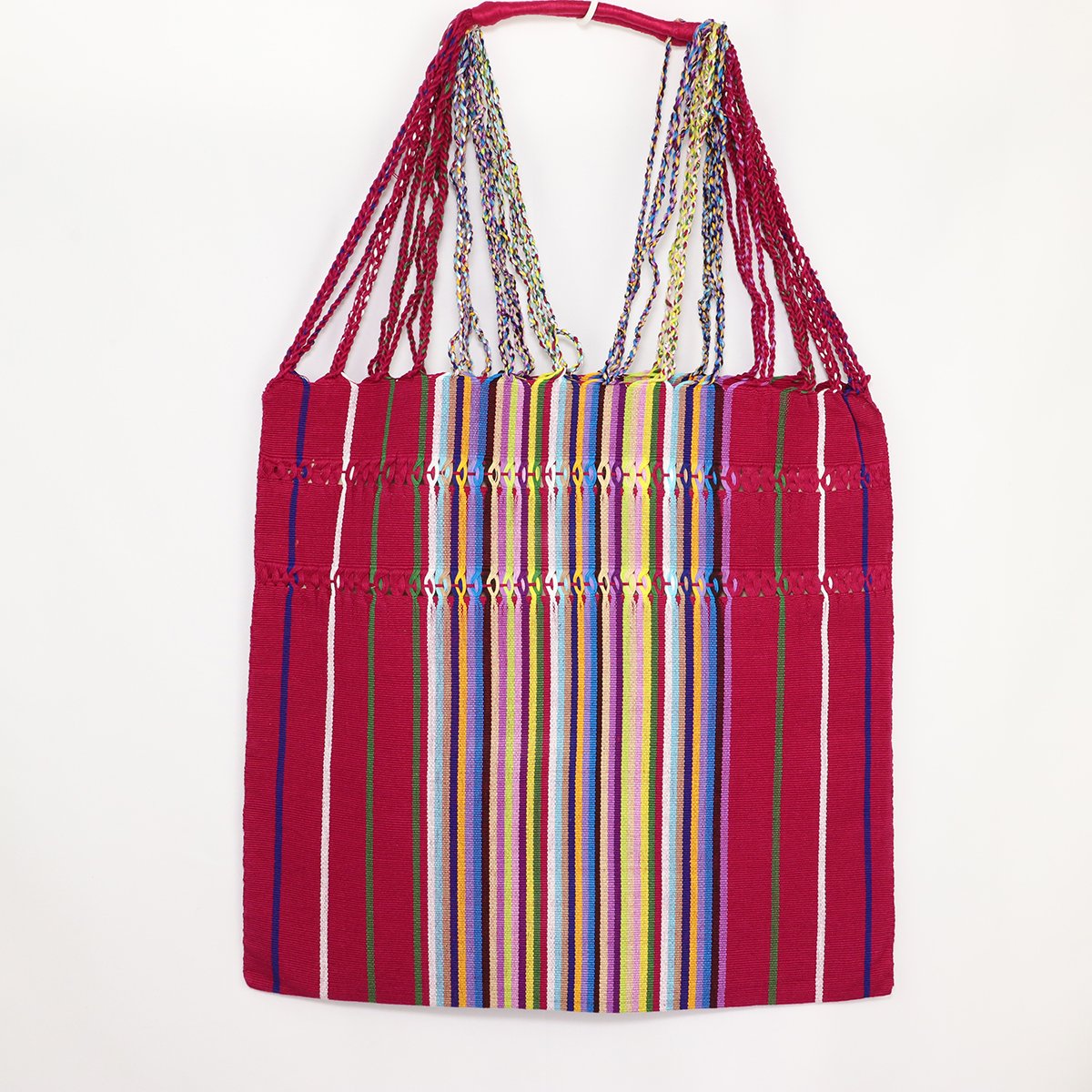 メキシコ・チアパス州の職人が手作業で織り上げたコットン100%のハンモックバッグは、一枚布ならではの柔らかな強さと、手仕事のあたたかみが魅力です。